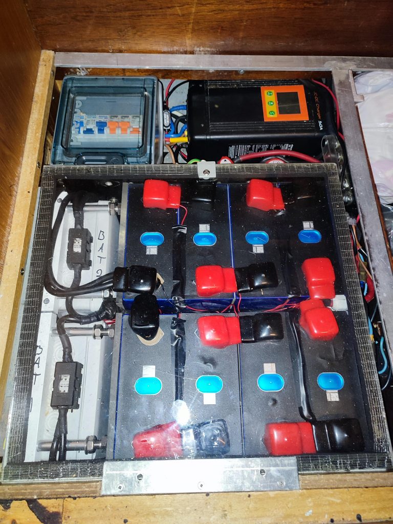 Compared to an off the shelf solution, the total system cost was 80% lower using individual cells. The BMS was also integrated to the ship’s network to allow remote state of charge and energy consumption/production monitoring. The 7.2 kWh battery bank along with 800 W of installed solar capacity means the vessel is essentially shore power independant, even for water heating and cooking loads.